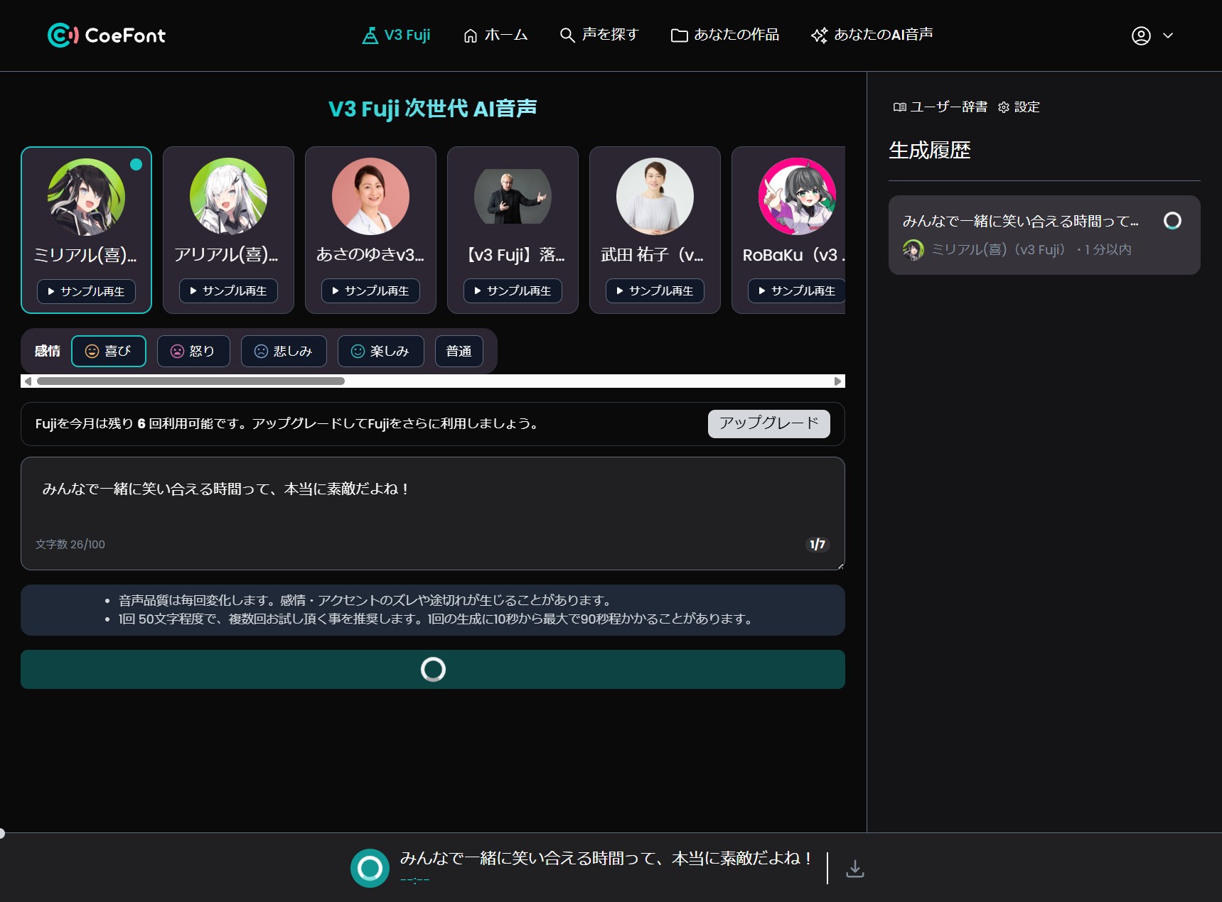 5.音声生成の処理には、内容や設定によっては時間がかかることがあります。