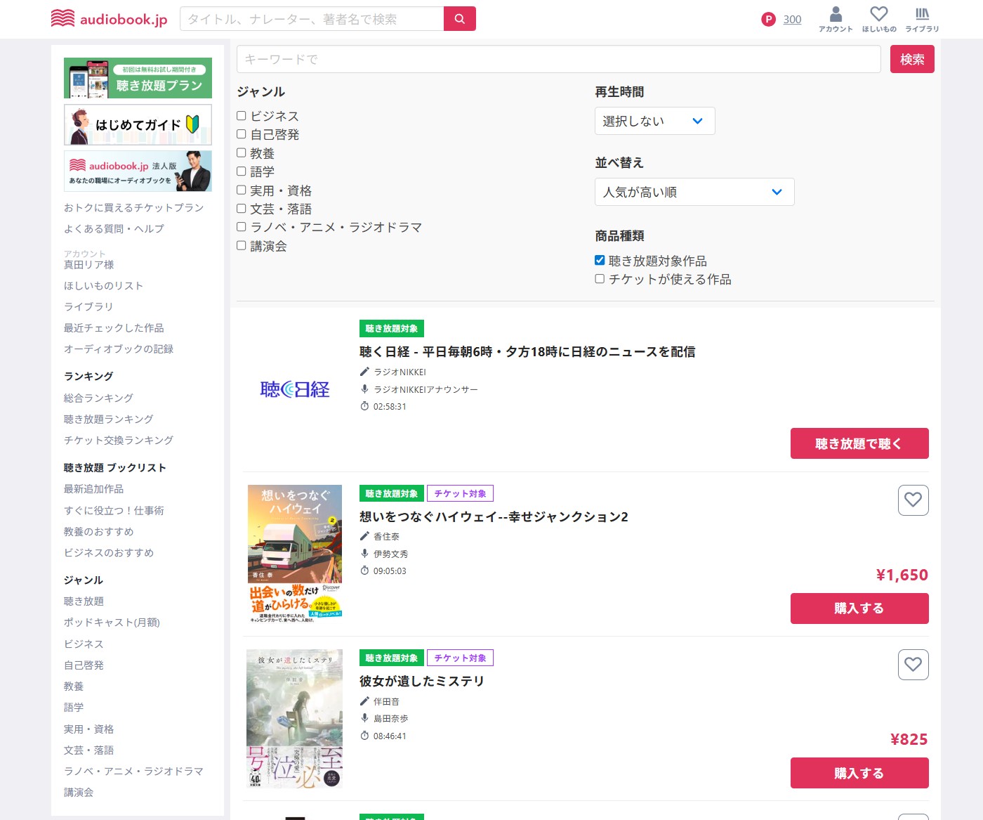 audiobook.jpは、日本最大級のオーディオブック配信サービスで、ビジネス書から小説、語学教材まで幅広いジャンルを楽しめるのが特徴です。アプリさえあれば通勤中や家事の合間に“ながら読書”ができるため、利用者が年々増えています。