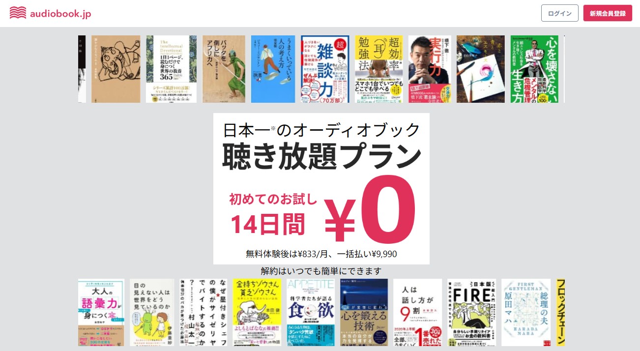 audiobook.jpの「聴き放題プラン」は、初回に限り 30日間の無料体験 を利用できます。(※期間は変動することがあります)