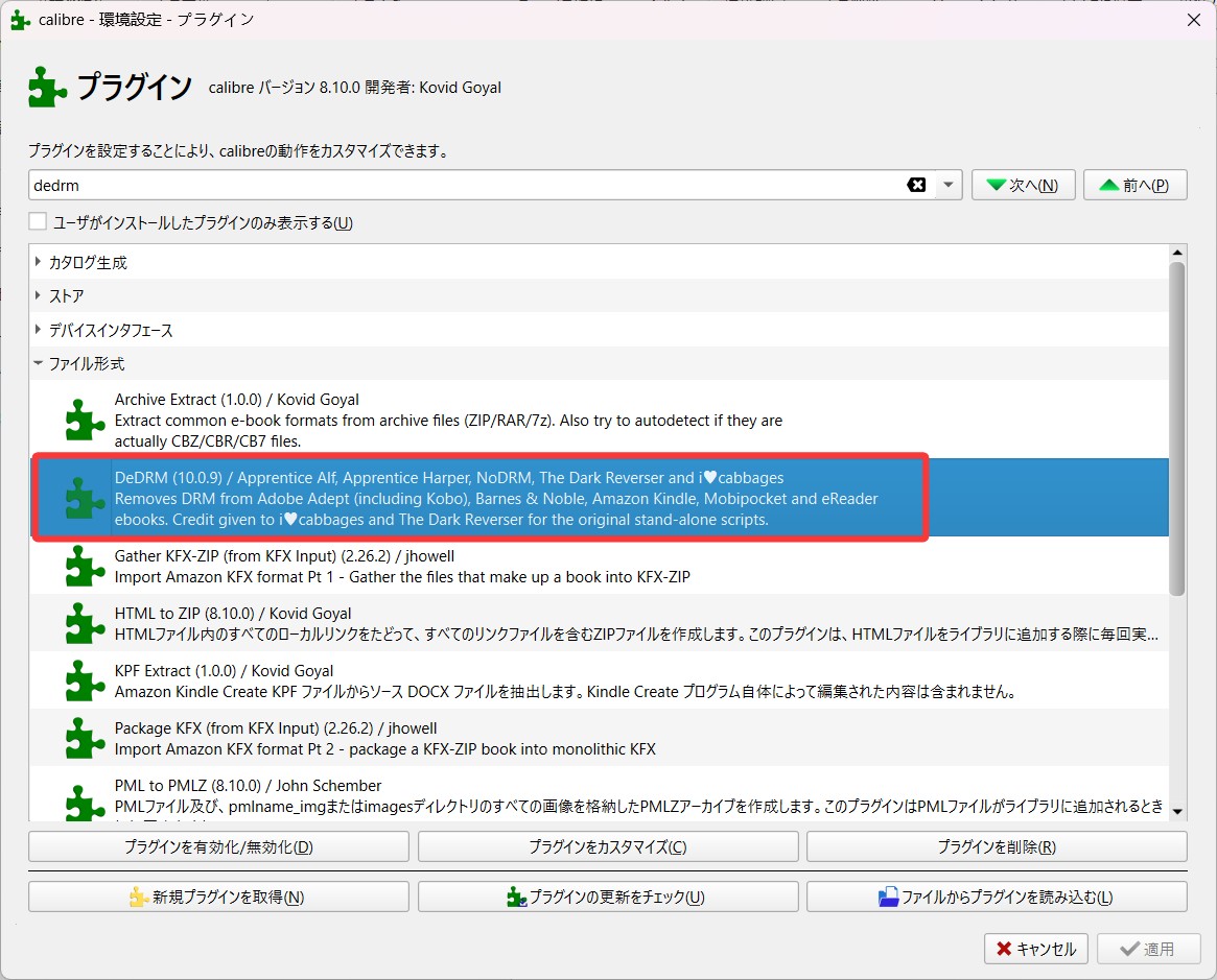 Calibreでkindle DRM解除が不可欠なプラグインーーDeDRM
