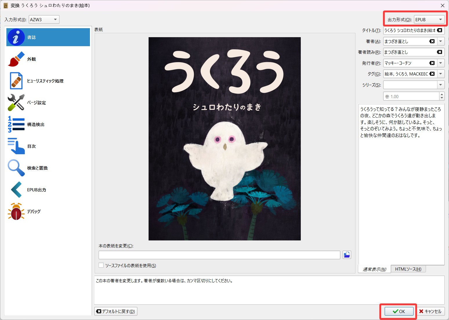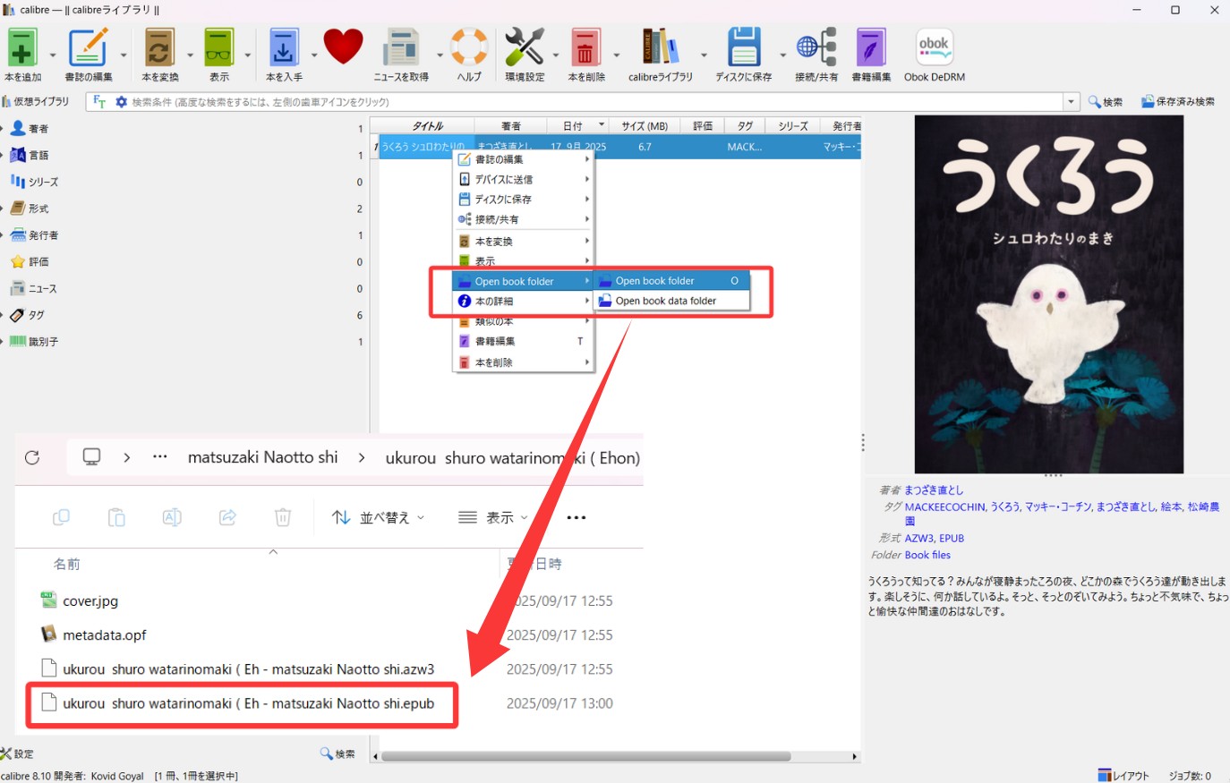 一度Calibreに追加した書籍を削除し、再びダウンロードしてインポートし直すことで、エラーが消えるケースもあります。