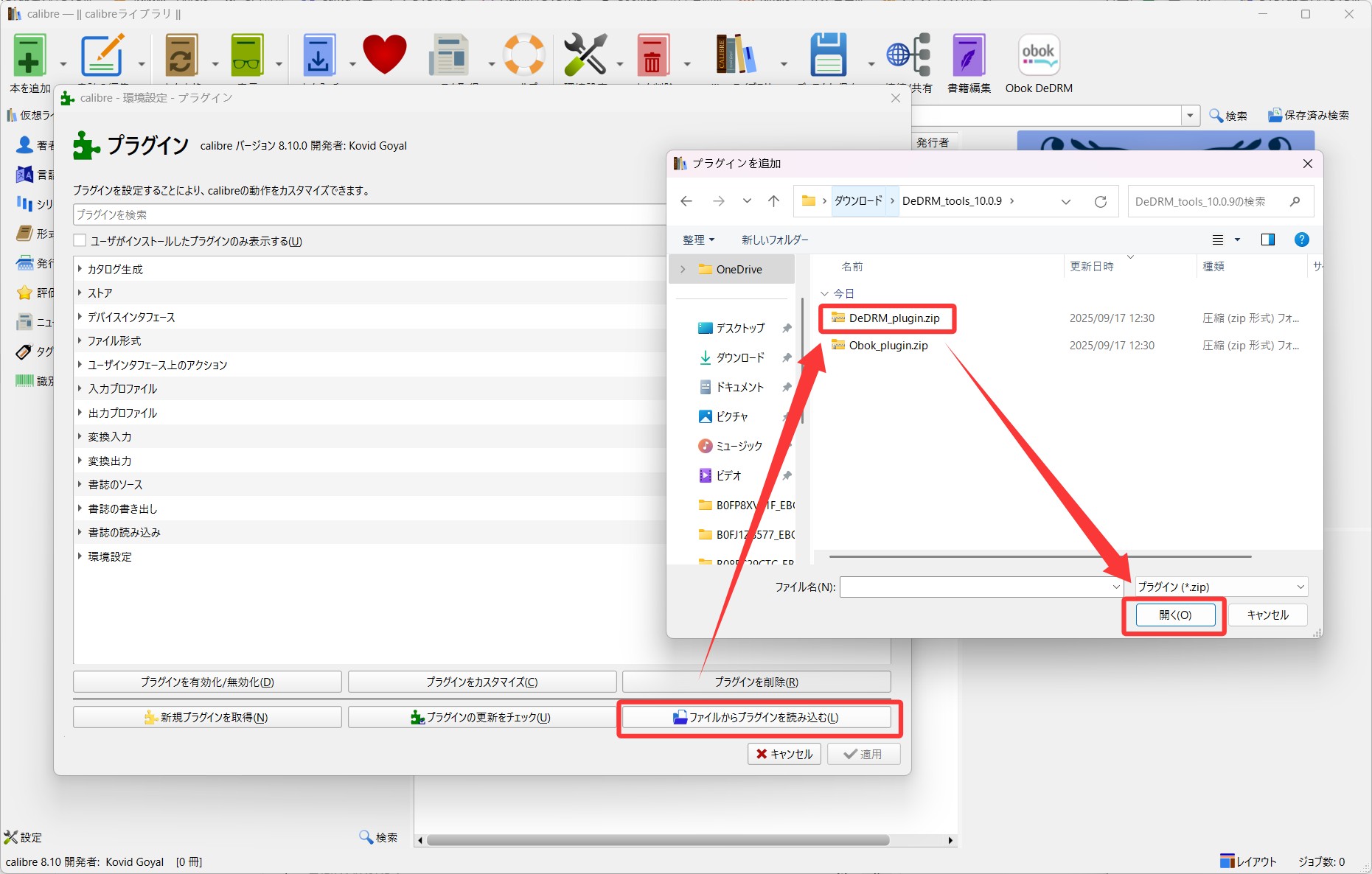 CalibreにDeDRMプラグインの追加