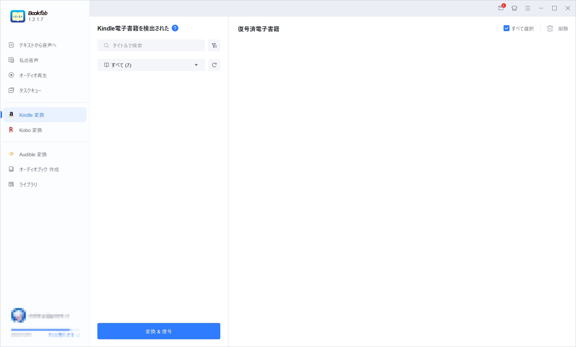 形式を指定した後、変換したい書籍を選び、「変換&復号」をクリックすると処理が開始されます。