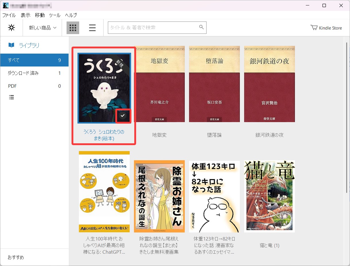 次に、Kindle for PCを開き、変換したいKindle電子書籍をダウンロードします。購入済みの書籍であれば、通常どおりライブラリから保存するだけで準備は完了です。