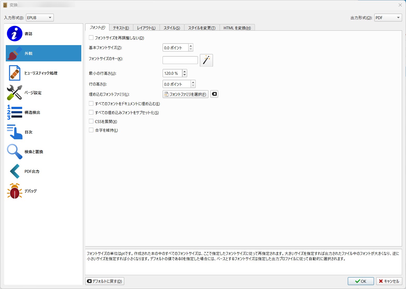 CalibreでPDFに変換したら文字が小さい/余白が大きい