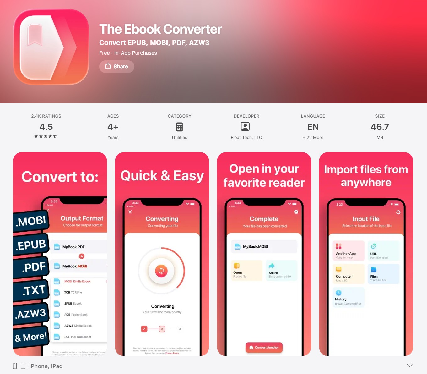 対象ユーザー:DRMフリー(保護なし)の電子書籍やパーソナルドキュメントを扱い、安全な公式アプリで手軽に変換したいユーザー