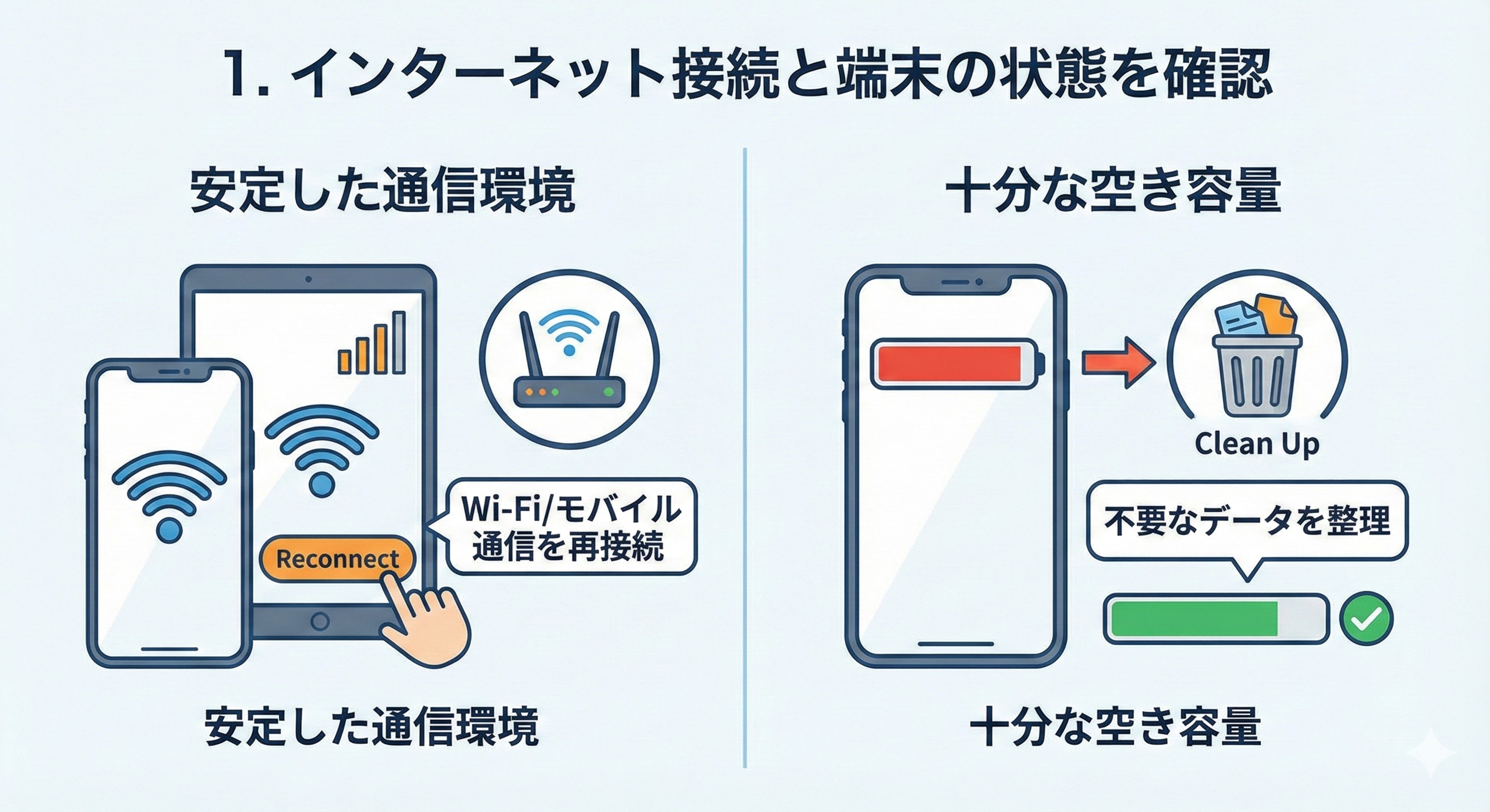 こうしたトラブルはネット環境や端末、アプリの設定が原因で起こることが多いため、原因を理解し順を追って対処することが重要です。この記事を通してトラブル解決の手がかりを掴んでいただければ幸いです。