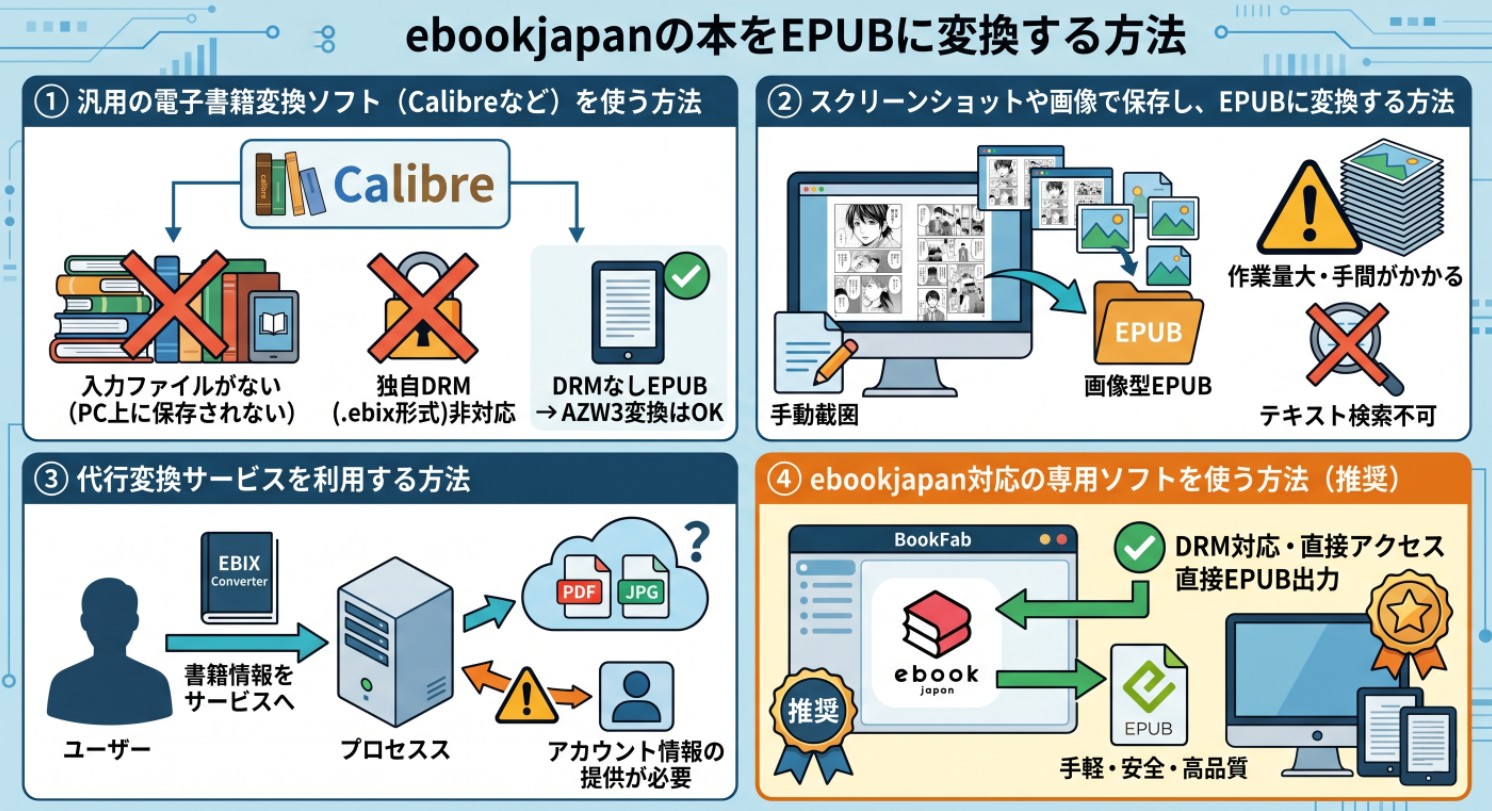 【2026年最新】ebookjapanの本をEPUBに変換する方法!できない理由と現実的な解決策を徹底解説