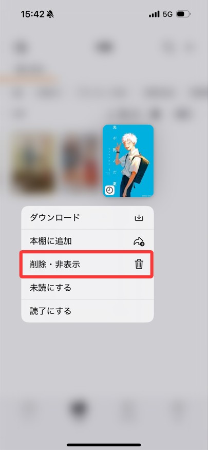 DMMブックスからダウンロードした作品を削除する手順(スマホアプリ):