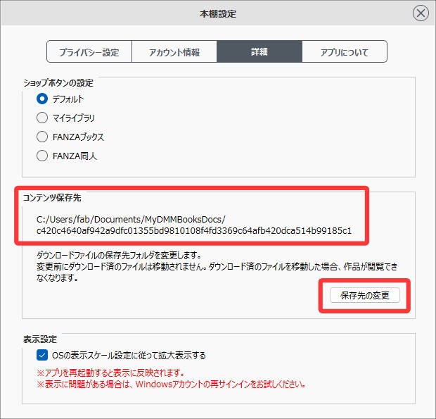 PC版DMMブックスアプリでダウンロードした作品は、PC内部のフォルダに保存されます。保存先はアプリ内の設定画面から確認・変更が可能です。