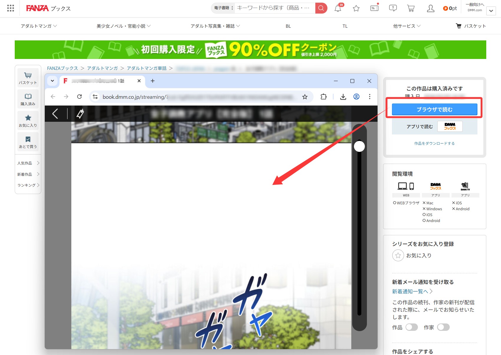 ブラウザビューアでFANZA漫画を読む場合の制限