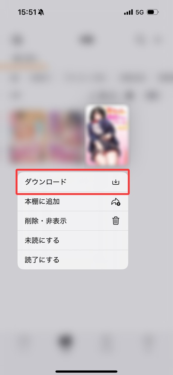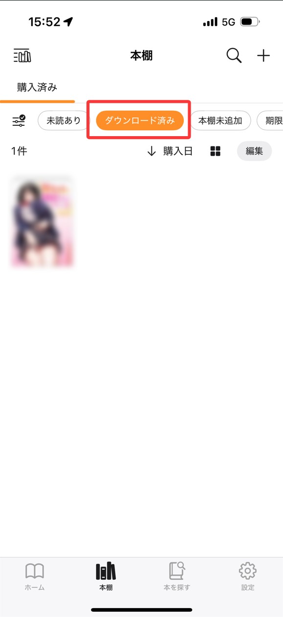 ダウンロードが完了すると、作品の表示が 「ダウンロード済み」 に変わります。これで、インターネット接続がない環境でもアプリ内で閲覧できるようになります。