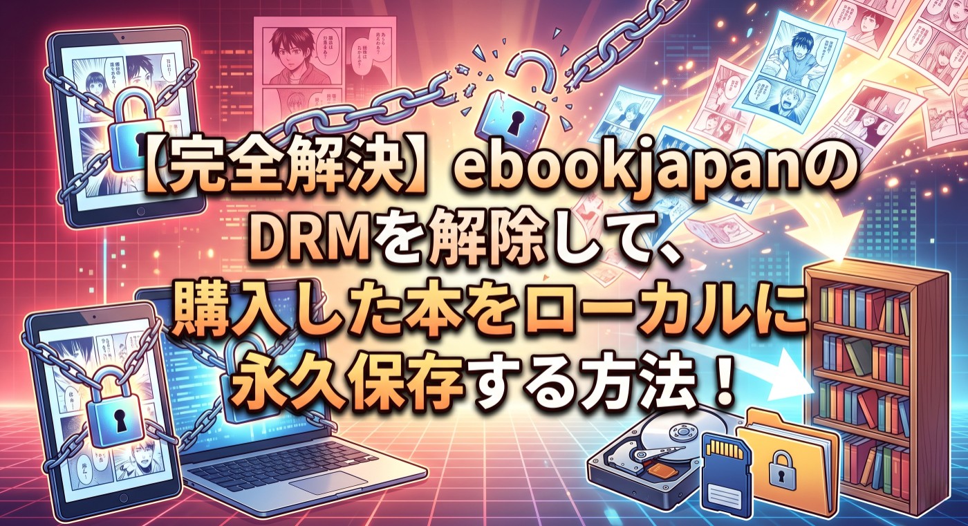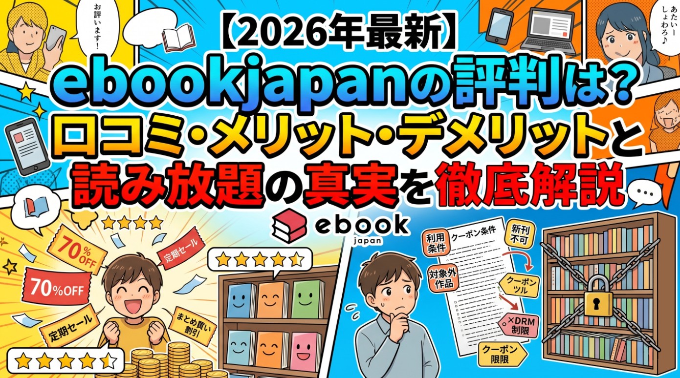 「ebookjapanって実際どうなの?」「読み放題はあるの?」「アプリが重いって本当?」——そんな疑問を持つ方のために、ebookjapanの評判・口コミを徹底的に調査しました。良い評判だけでなく、悪い評判やデメリットも包み隠さず解説します。さらに、多くのユーザーが誤解している「読み放題」の仕組みと、購入した電子書籍に施されたDRM制限という隠れた問題点、そしてその現実的な解決策まで詳しく紹介します。#ebookjapan 評判