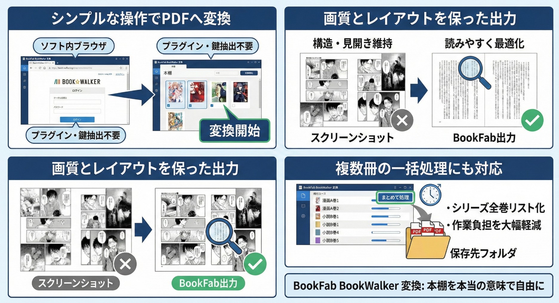 このように、「BookFab BookWalker 変換」は、これまでの手間・リスク・技術的な壁をすべて取り払い、あなたの本棚を本当の意味で自由にします。