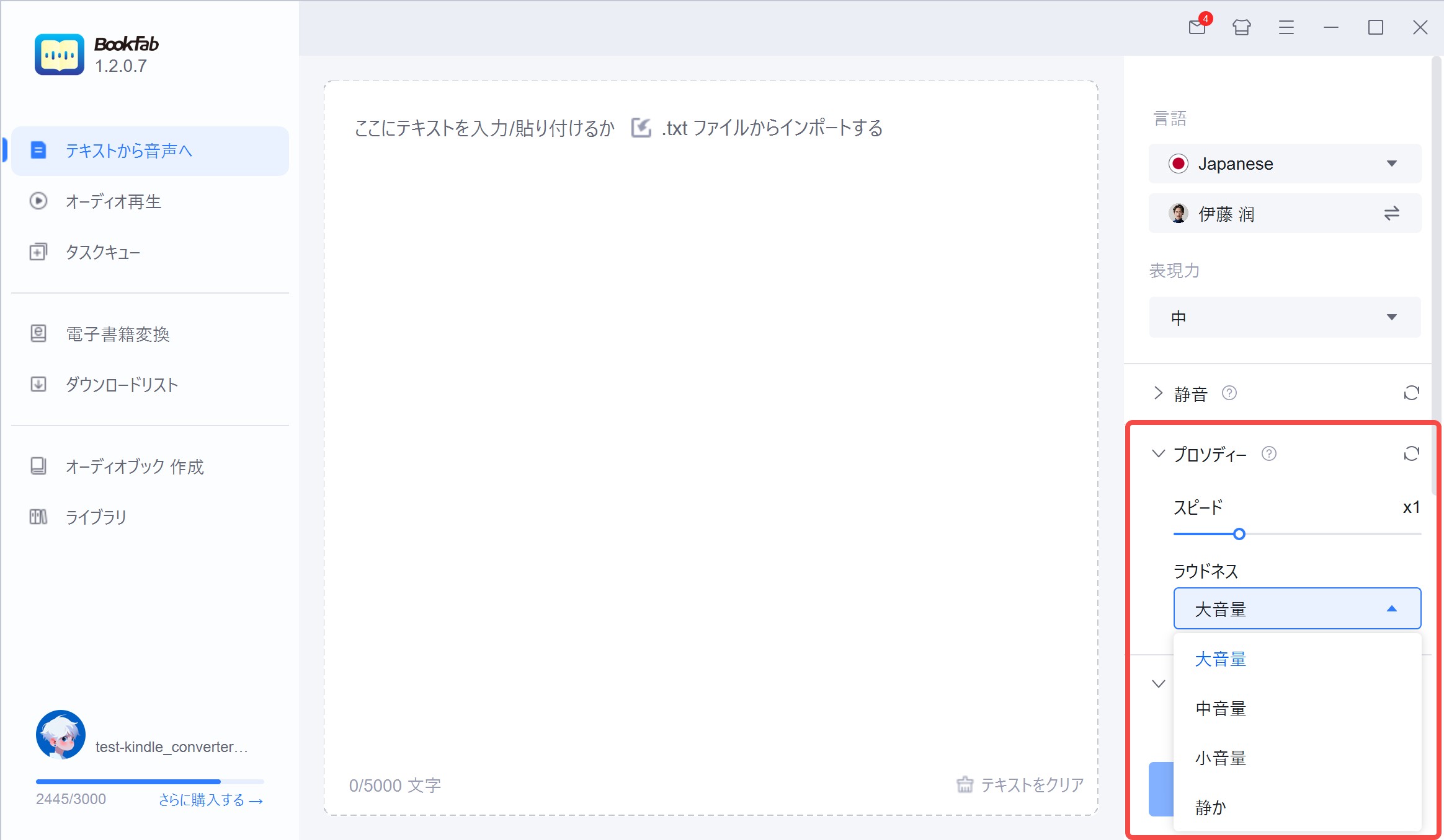 すべての音声が同じように聞こえるべきではありません。そこで役立つのが韻律の設定――スピードと音量です。なぜある読み上げは聞き取りやすく、別のものは急ぎすぎたり平板に感じられるのか、不思議に思ったことはありませんか?BookFab TTSの韻律を微調整することで、コンテキストや聴衆にぴったり合った音声を実現できます。